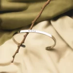 Overall, the Silver Plated Personalized Engraved Name Kada in the image is a stylish and eye-catching piece of jewelry. The combination of the gleaming silver, the clean engraving, and the wide band makes it a real statement piece. It would be a wonderful gift for someone special, or a treasured addition to any jewelry collection.