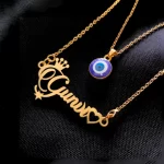 Name necklace is a Evil Eye Two Layered Name Necklace for you and your loved ones. Wear this personalized name chain or gift someone you love on a special occasion like Valentine’s Day, Anniversaries, Birthday, Christmas, Mother’s Day, Thanksgiving, etc.