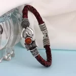 Fine sterling silver new trendy stylish Shiva Mahakal bracelet. Fabulous leather belt with Shiva trident silver bracelet, black onyxstone bracelet, amazing personalized gifting unisex jewelry from India.