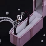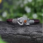 One Sided Rudraksha Trishul Damroo Designer Silver Plated Shiva Genuine Leather Brown Dyed Rope Wrist Band/Belt Kada Bracelet Unisex Cuff Bracelets for Men Women Boys OM God pendant Latest stylish bracelets men boys classical design.