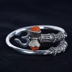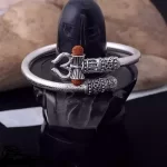 A gorgeous kada for all the lovers of Sankara, Lord Shiva, Bholenath – with exquisite carvings of a Trishul and a turquoise Damroo . This Overlapping Kada can be easily slipped on . Silver kada are a beautiful embellishment for ones’ wrists and can be seen adorned by men. Om Namah Shivaay !