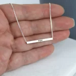 The Elegant Silver Plated Personalized Horizontal 3D Bar Pendant is a stunning piece of jewelry that combines style and sentimentality. Crafted with intricate attention to detail, this pendant features a sleek cuboid shape, exuding a modern and sophisticated charm.