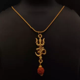 Shiv Trishul Om Pendant With Rudraksha Mala