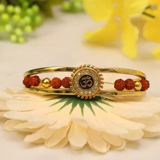 Om Sun Cuff Kada Bracelet with Rudraksh and Crystal for Men